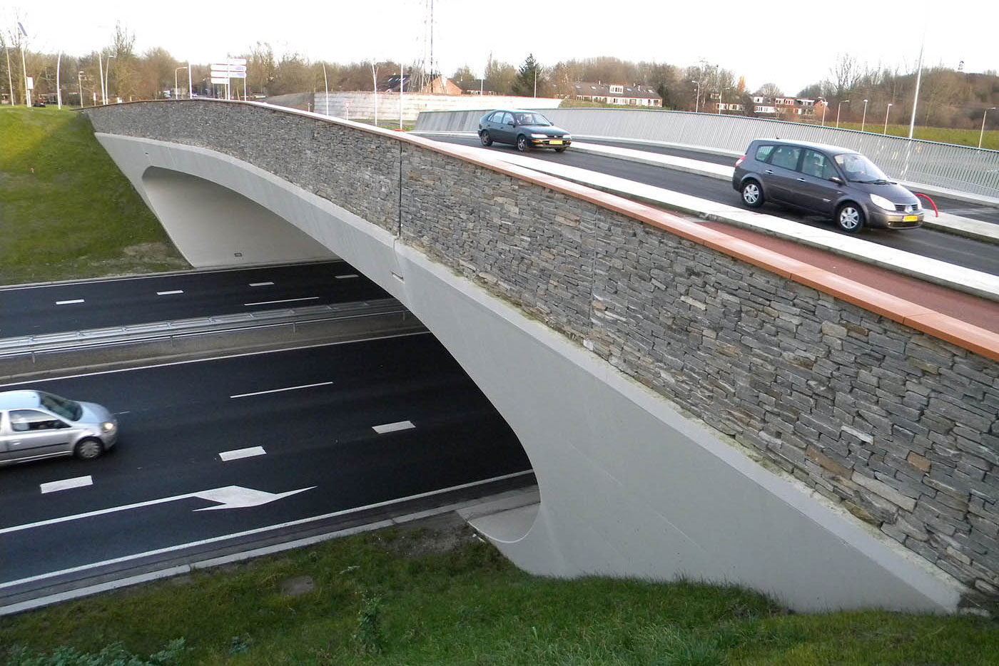 Die vier gemauerten Überführungen aus Naturstein wurden mit Holonite-Mauerabschlüssen abgefertigt. Natuurgevelsteen BV wurde kürzlich von der Niederländischen Botschaft für den CSR-Ansatz nominiert. Die Zielsetzung ihres Unternehmens ist es, Arbeitsplätze in Mazedonien zu schaffen. Holonite schließt sich hiermit gerne dieser Art von Unternehmerische Gesellschaftsverantwortung an.