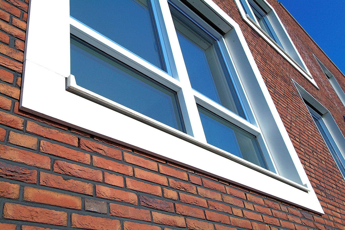 Vathorst, der große Vorort von Amersfoort, erhielt kürzlich einen guten Teilplan hinzu: il Promenade. Die Apartments und die zurückgesetzten Einfamilienhäuser verfügen über Fassaden, die man selten sieht. Hübsches oranges Mauerwerk mit einer dunklen Fuge in Kombination mit kontrastreichen Fensterpartien aus Holonite weiß.